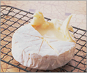 - カマンベールチーズの表面(上になる部分)に切れ目を入れ、外側の皮をはぐ。