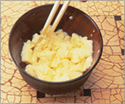 - お碗に卵豆腐を入れて箸で細かく崩す。