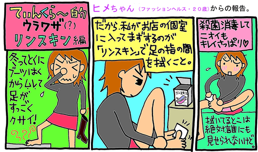 「ねぇねぇ、聞いてよ。昨日、彼氏と“A”しちゃった! キャ!」とか言う会話を聞いて、「まぁ、“A”ってキスでしょ? 可愛いわねぇ!」などついつい考えてしまうアナタ。オバタン度80超えですよ。まぁ、今どきいませんよね、そんなこと言う人…。 “A” とはもちろん、アナル(プレイ)のこと。ヘルスやエステ系のサービスでは、そこを舐めたりいじったり…ってことが日常茶飯事なのだ。ただでさえ、不衛生なアナルのこと。「どうせ舐めるなら、できる限り清潔にして舐めたいもんだわ」と、てぃんくら~なら思わずにはいられないハズ。そんなアナタにオススメなのが、あらかじめ消毒薬をしみこませた脱脂綿、『皮膚洗浄綿』なのだ。 |
