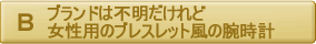 ブレスレット風=アクセサリーと見まごうような時計、ということ。アクセサリーは、心理学では「見栄」の象徴です。これを選んだあなたは、とにかく華やかで目立つ仕事に興味を抱き、チャンスがあれば転職したいとさえ考えていそう。正直、芸能界入りを狙っているのでは? すでに芸能プロに研修生として在籍していたりして。それはいいけど、レッスン料の名目で法外なお金を盗られたあげくクビ!なんてことにならないよう注意。