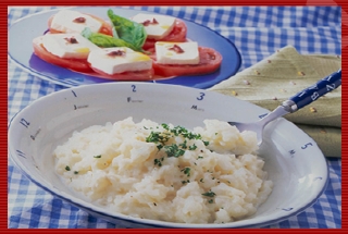 冷やごはんの上に牛乳をひたひたに注いで、スープをかけて混ぜてから、チンするだけでOK。