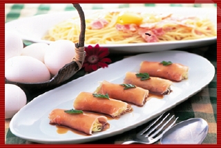 パスタを皿に盛りつけたら、てっぺんに軽くくぼみを作り、卵黄をのせ、ほぐしながら食べる。